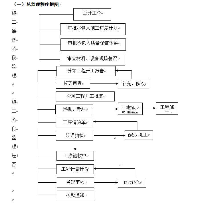 监理工作流程 来源:未知 作者:admin 发布日期:2017-09-15 11:53 浏览次数: 本文摘要:(十一)安 全 监 督 管 理 工 作 控 制 流 程... (十一)安 全 监 督 管 理 工 作 控 制 流 程 上一篇:监理方案 下一篇:工程质量控制的监理方法及措施 相关资讯 监理实施细则 (条形基础及主体结构工程) 保修阶段(缺陷责任期)监理 合同信息管理 装修分部分项工程质量控制的监理对策 现场旁站监理方案 拟投入该项目的人员及检测仪器设备 安全管理 工程进度控制的方法和措施